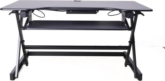 The DADRB-40-ACUSB moves in a straight up and down pathway when adjusting the height. This eliminates the need to worry about extra depth required in order to make the desk fit in its place once raised. Depth required is only 23.6 inches. The desk riser dimensions are 23.6 inches deep x 40 inches wide and a minimum of 5.3 inches high to a maximum height of 20.6 inches. The handy retractable keyboard tray is 11.25 inches deep x 25.7 inches wide.