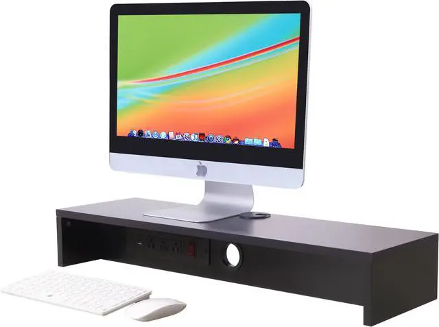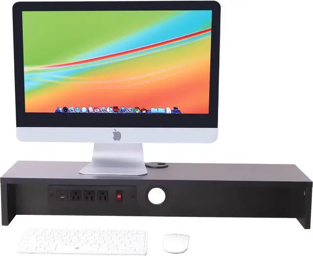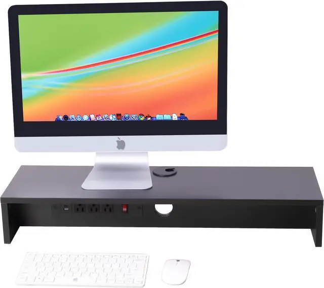 Add vertical height to any desktop workspace with the addition of the Dual Monitor Stand AC-USB! The Rocelco Dual Monitor Stand is 30" wide, it holds two standard size or one large monitor. It includes 3 UL approved AC outlets plus one USB and one USB-C charging ports. Benefit from enough outlets to power and charge all your devices. The Rocelco DMSV raises your monitors to a comfortable ergonomic height. Use the space underneath to store your keyboard and mouse. Works on a desk or desk riser. Stay focused and productive by keeping your workspace organized and clutter-free with the Rocelco Dual Monitor Stand.