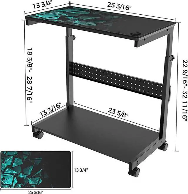 Multifuctional Design: Efficient 2-tier design. The bottom shelf stores the PC tower while the top shelf holds printers, plants, documents, and magazines. Pegboard on back organizes office supplies such as power strips, etc. Mousepad included, this CPU stand can be used for mouse operation & comfortable arm rest. Can also be used as mobile laptop stand or rolling computer desk that allows you to settle into any place for work like bed and sofa, ready to set up