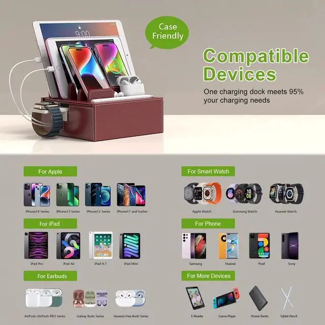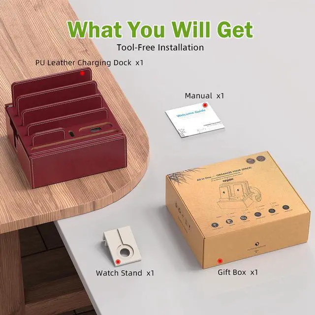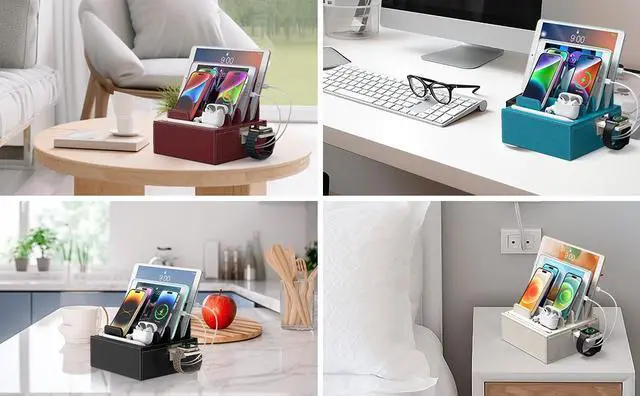 Made of leather, this charging stand can hold multiple devices or a variety of small objects, with a beautifully simple appearance, ideal for storage in the living room or office, it will make your desktop look clean and tidy.