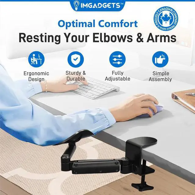 Improve your workspace comfort with this Clamp-On Rotating Armrest. Designed for both home and office setups, this adjustable armrest is perfect for supporting your arms and wrists during long desk sessions, whether you're working or gaming. It provides a cushioned surface that reduces strain and promotes better posture, making it a valuable addition to any desk.