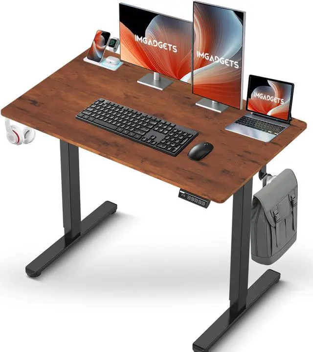 IMGadgets Standing Electric Adjustable Desk | Large Workspace with 2 hooks | Ergonomic Sit-Stand Desk | 3-Memory Settings | Scratch-Resistant & Waterproof | Quiet Operation <55dB 40" x 24" Brown