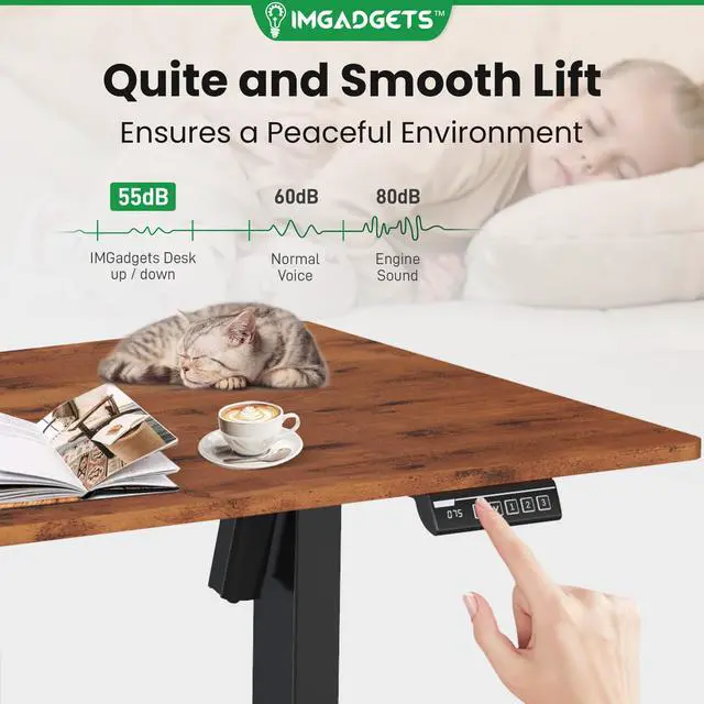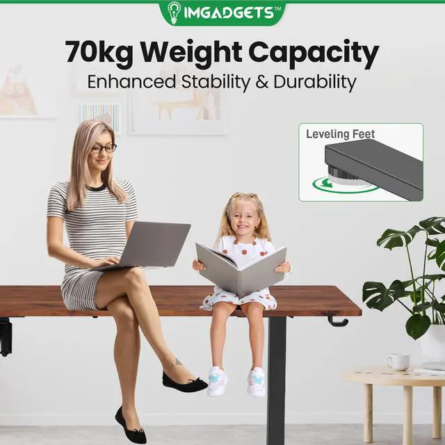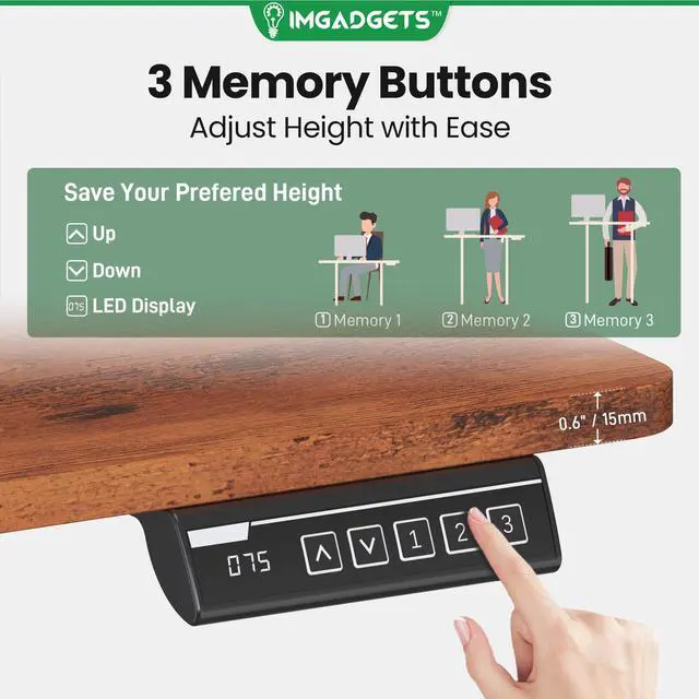 • Elevate your workspace with the IMGadgets Electric Standing Desk, a versatile and feature-rich solution for home offices and professional setups. This sit-stand desk offers smooth electric height adjustments from 28" to 47", allowing you to seamlessly switch between sitting and standing. With a built-in 3 memory settings, you can save your favorite height settings for ultimate convenience. The anti-crash design ensures safe height adjustments, preventing damage to objects or the desk itself.