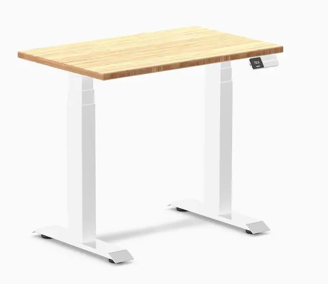Canada's Favourite Mini Sustainably Sourced Bamboo Sit Stand DeskThe Desky Dual Mini Sit Stand Desk emerges as one of our most visually appealing standing desk choices. It boasts a triple-layered bamboo surface, skillfully mounted on our state-of-the-art adjustable frame. Similar to its static counterparts, we've infused it with a chic design that radiates sophistication. Yet, this desk brings an extra benefit complete adaptability! The desk's aesthetics are so captivating that its remarkable functionality might momentarily escape your attention. We dedicated ourselves to refining its design, resulting in the most steadfast sit-stand desk in existence.