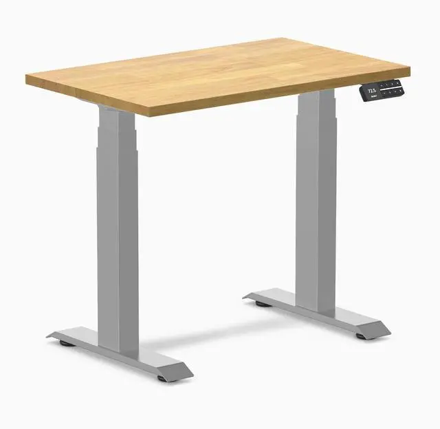 Introducing the Desky Dual Mini Rubberwood Sit Stand Desk Maximizing Functionality in Small SpacesThe Desky Dual Mini Rubberwood Sit Stand Desk takes the lead among compact sit-stand desks, effortlessly surpassing its competitors. We're all aware of the numerous health benefits associated with sit-stand desks. Even if you have limited workspace, it's crucial to stay active throughout the workday, enhancing creativity and productivity. By regularly adjusting your position, you can alleviate poor posture, as well as neck and back pain. Our mini sit-stand desk provides the full range of expected height adjustments, all while taking up minimal space.