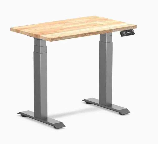 Introducing the Desky Dual Mini Rubberwood Sit Stand Desk Maximizing Functionality in Small SpacesThe Desky Dual Mini Rubberwood Sit Stand Desk takes the lead among compact sit-stand desks, effortlessly surpassing its competitors. We're all aware of the numerous health benefits associated with sit-stand desks. Even if you have limited workspace, it's crucial to stay active throughout the workday, enhancing creativity and productivity. By regularly adjusting your position, you can alleviate poor posture, as well as neck and back pain. Our mini sit-stand desk provides the full range of expected height adjustments, all while taking up minimal space.