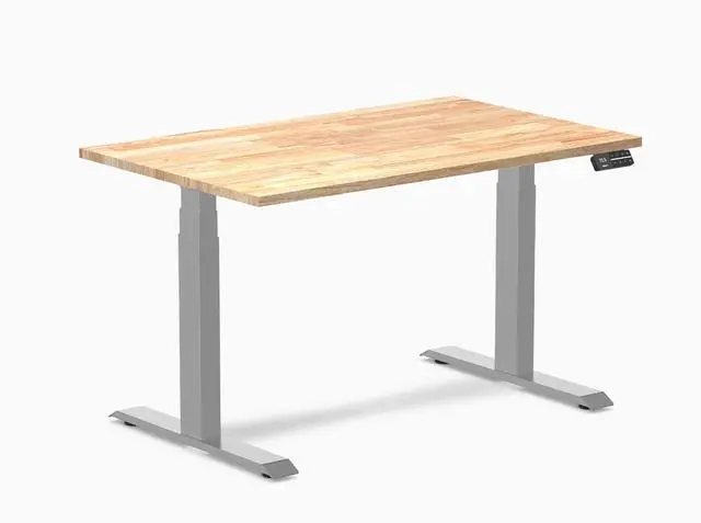 Desky Dual Rubberwood Sit Stand Desk - Natural Timber / 48 x 30 inches / Grey