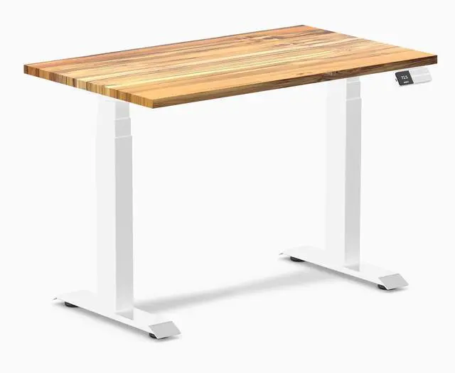 Desky Dual Mini Hardwood Sit Stand Desk - Teak / 40 x 24 inches / White