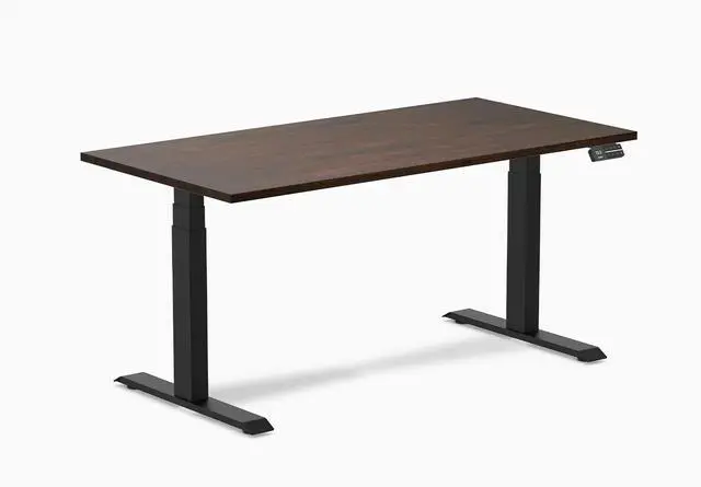 Desky Dual Rubberwood Sit Stand Desk - Dark Walnut / 60 x 30 inches / Matte Black