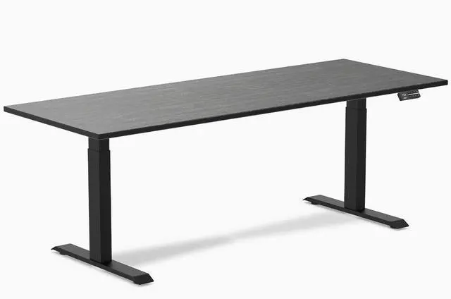 Desky Dual Bamboo Sit Stand Desk - Dark Bamboo / 80 x 30 inches / Matte Black
