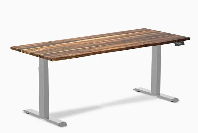 Desky Dual Hardwood Sit Stand Desk - Pheasantwood / 72 x 30 inches / Grey