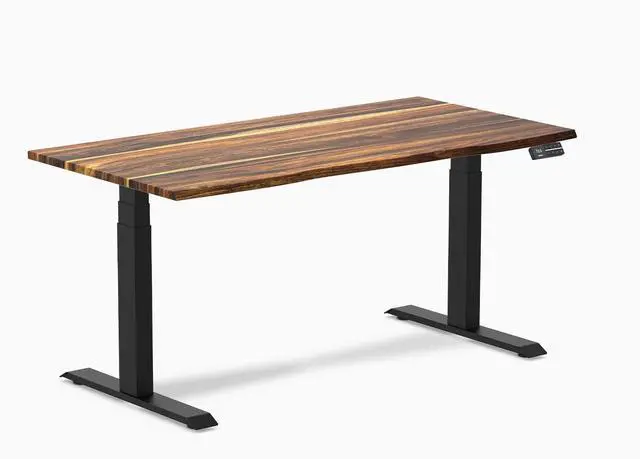 Desky Dual Hardwood Sit Stand Desk - Pheasantwood / 60 x 30 inches / Matte Black