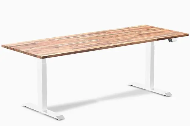 Desky Dual Softwood Sit Stand Desk - Acacia / 80 x 30 inches / White