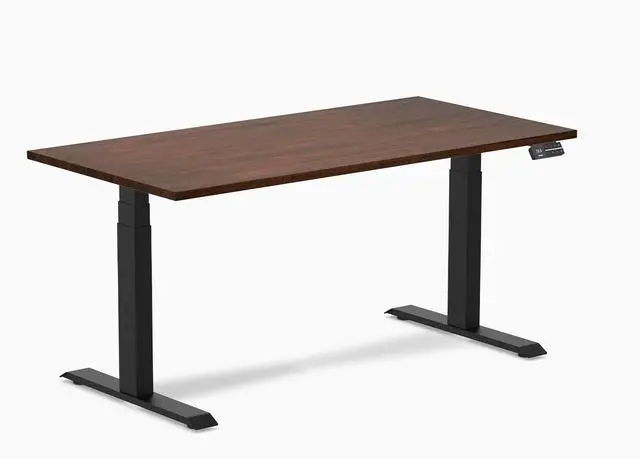 Desky Dual Rubberwood Sit Stand Desk - Red Walnut / 60 x 30 inches / Matte Black