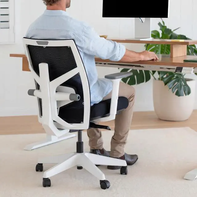 The built-in synchro-tilt mechanism allows for the seat and back of the chair to tilt simultaneously at slightly different ratios, ensuring the backrest reclines at a comfortable angle without forcing your feet off the floor. This design is typically only found in more expensive ergonomic chairs. Once you find your ideal position, the tilt-lock secures the chair in place. The durable material of the Elite's back mesh fabric means better ventilation and airflow, keeping you cool by transferring heat away from you. The Elite's breathable fabric and padded seat cushion allows you to focus by making your sitting experiences far more comfortable.