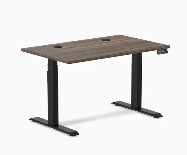Desky Dual Laminate Sit Stand Desk - Jarrah Legno / 47.2 x 29.5 in / Matte Black