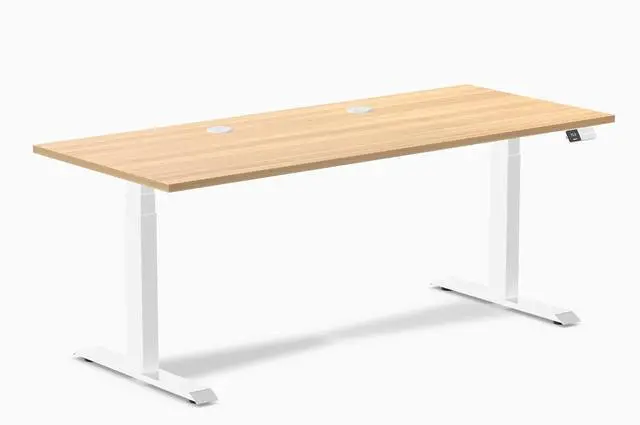 Choose from a variety of durable laminate desktops to match any workspace design. LED controls with four memory presets make height adjustments effortless, while an under-desk cable tray keeps your setup tidy. Elevate your workspace with the Desky Dual Laminate