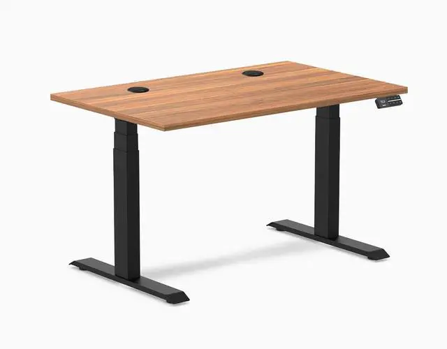 Desky Dual Laminate Sit Stand Desk - Prime Oak / 47.2 x 29.5 in / Matte Black