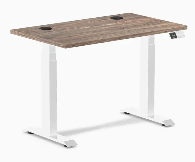 Desky Dual Mini Sit Stand Desk - Natural Walnut / 40 x 24 in with Grommets / White