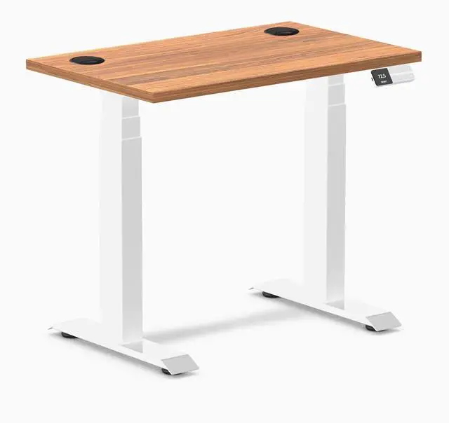 Desky Dual Mini Sit Stand Desk - Prime Oak / 32 x 20 in with Grommets / White