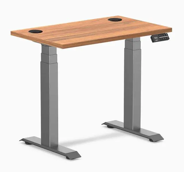 Desky Dual Mini Sit Stand Desk - Prime Oak / 32 x 20 in with Grommets / Space Gray