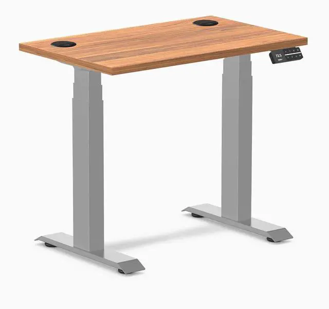 Desky Dual Mini Sit Stand Desk - Prime Oak / 32 x 20 in with Grommets / Gray