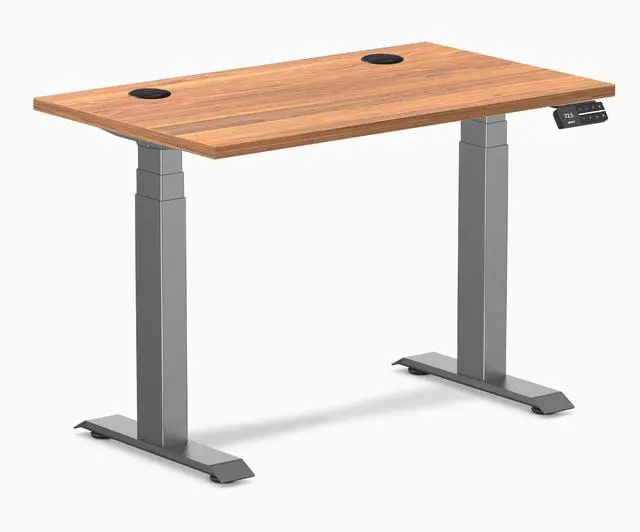 Desky Dual Mini Sit Stand Desk - Prime Oak / 40 x 24 in with Grommets / Space Gray