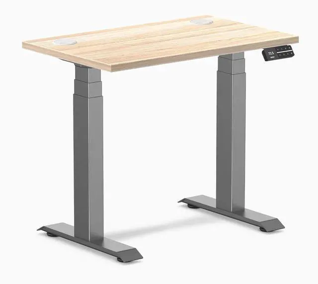 Desky Dual Mini Sit Stand Desk - Classic Oak / 32 x 20 in with Grommets / Space Gray