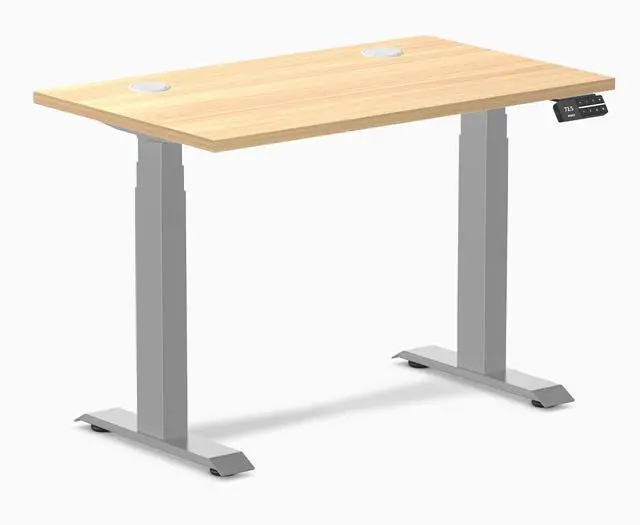 Desky Dual Mini Sit Stand Desk - Sublime Teak / 40 x 24 in with Grommets / Gray