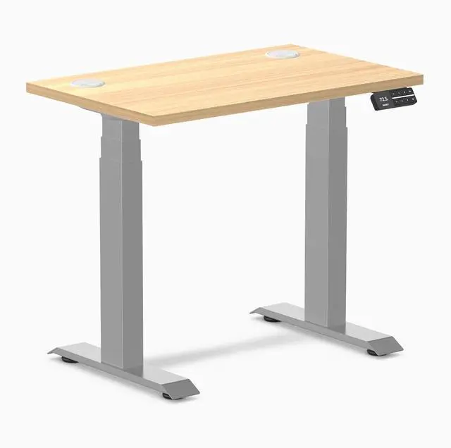 Desky Dual Mini Sit Stand Desk - Sublime Teak / 32 x 20 in with Grommets / Gray