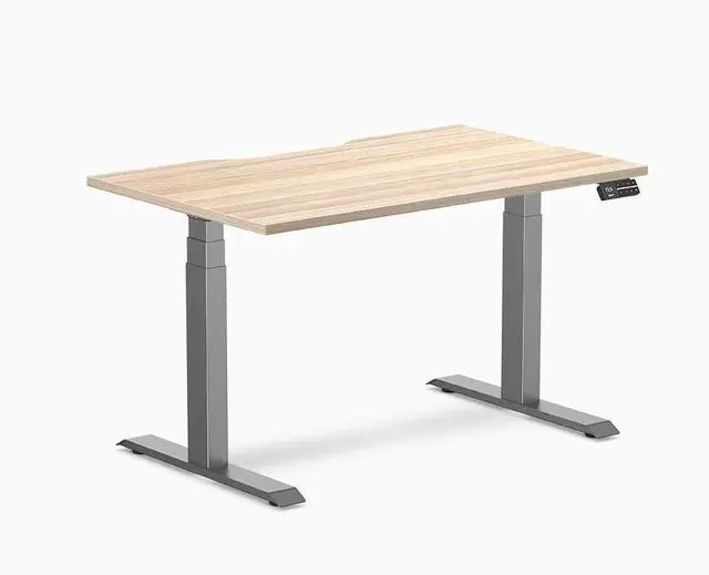 Desky Dual Scalloped Laminate Sit Stand Desk - Classic Oak / 47.2 x 29.5 in / Space Gray