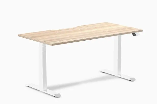 Desky Dual Scalloped Laminate Sit Stand Desk - Classic Oak / 59.1 x 29.5 in / White