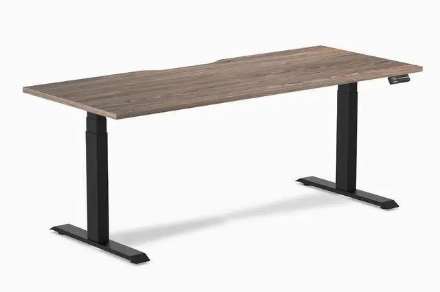 Desky Dual Scalloped Laminate Sit Stand Desk - Natural Walnut / 70.9 x 29.5 in / Matte Black