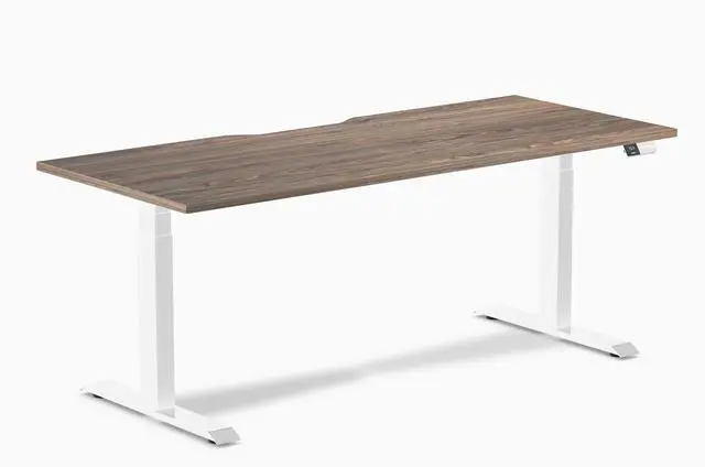Desky Dual Scalloped Laminate Sit Stand Desk - Natural Walnut / 70.9 x 29.5 in / White