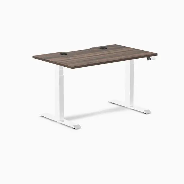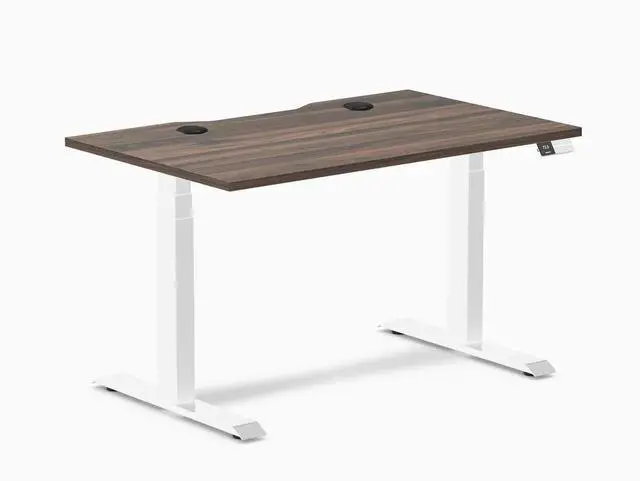 Desky Dual Scalloped Laminate Sit Stand Desk - Jarrah Legno / 47.2 x 29.5 in with Grommets / White