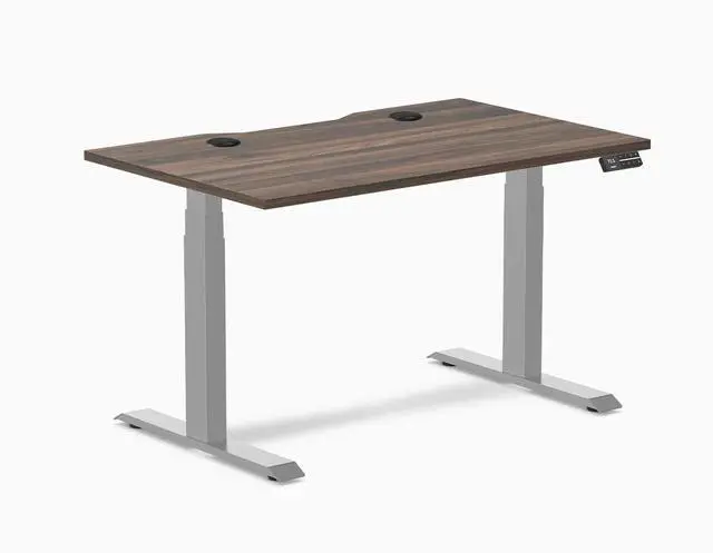 Desky Dual Scalloped Laminate Sit Stand Desk - Jarrah Legno / 47.2 x 29.5 in with Grommets / Gray