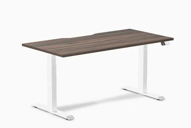 Desky Dual Scalloped Laminate Sit Stand Desk - Jarrah Legno / 59.1 x 29.5 in / White