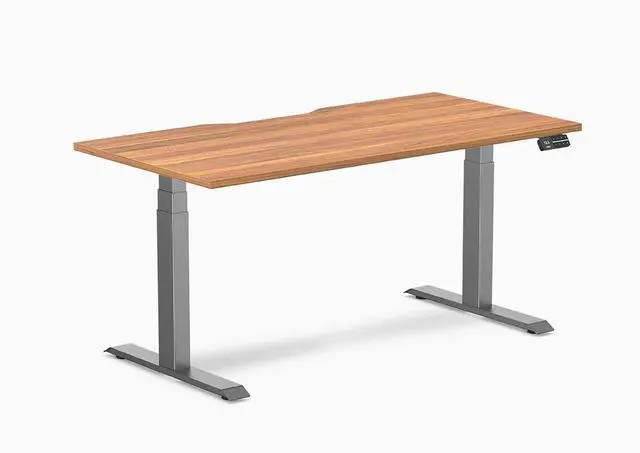 Desky Dual Scalloped Laminate Sit Stand Desk - Prime Oak / 59.1 x 29.5 in / Space Gray