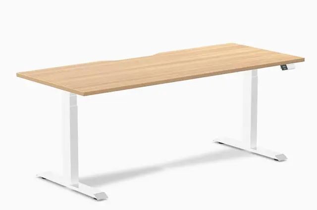 Desky Dual Scalloped Laminate Sit Stand Desk - Sublime Teak / 70.9 x 29.5 in / White