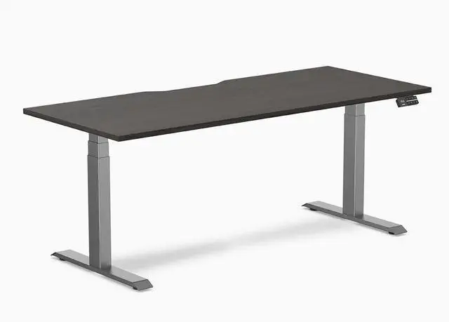 Desky Dual Scalloped Laminate Sit Stand Desk - Burnished Wood / 70.9 x 29.5 in / Space Gray
