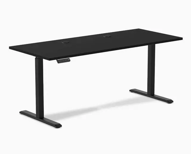 Desky Single Sit Stand Desk - Black / 70.9 x 29.5 in with Grommets / Black