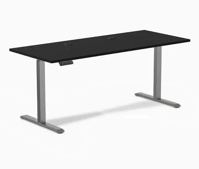 Desky Single Sit Stand Desk - Black / 70.9 x 29.5 in with Grommets / Space Gray