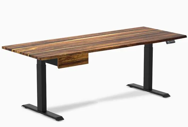 Introducing the Desky Dual Hardwood Standing Desk, now bundled with a matching Minimal Under Desk Drawer! Elevate your workspace with our premium hardwood sit-stand desk featuring two robust legs and dual motors for seamless adjustment. Choose from a selection of exquisite hardwood desktops to perfectly complement your office aesthetic or make a bold statement with a standout centerpiece. With a weight capacity of 140 kg, our desk offers unparalleled stability and whisper-quiet operation, accommodating multiple screens with ease. Customize your setup further with three available leg colors to seamlessly integrate with your existing decor.