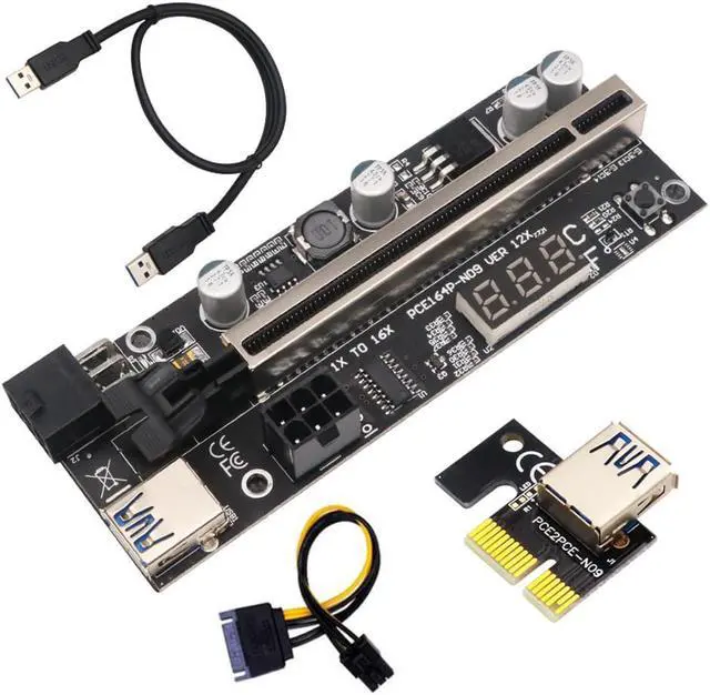 est Version PCIE Riser 1x to 16x Graphic Extension with Temperature Sensor for GPU Mining Powered Riser Adapter Card