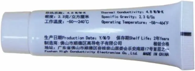 This product has high thermal conductivity, high insulation, high temperature bearing, not easy dried, non-volatile, non-toxic, tasteless, non-corrosive.
