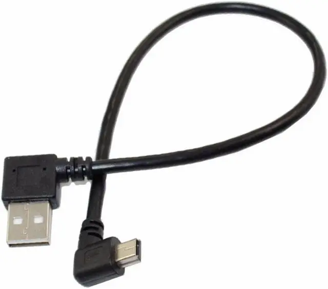 Short USB 2.0 -A-Male-4Pin to Right Angle Mini-B-5Pin for syncing and charging smartphones, GPS, external hard drives (Black)