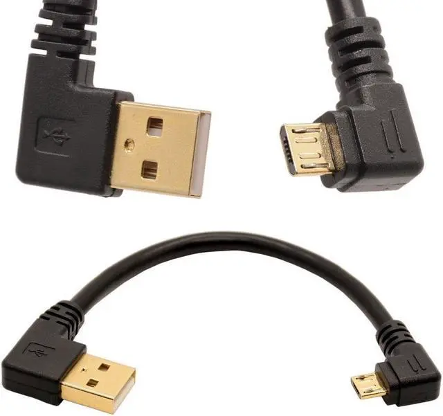 Gold Plated USB 2.0 A Left Angle to Micro B Right angled Cable Data Sync and Charge Cable (Right)