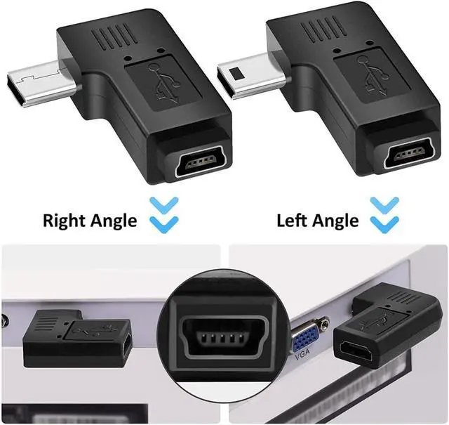 USB 2.0 Adapter Plug - Left and Right Angle Mini to Mini - Male to Female - Pack of 2