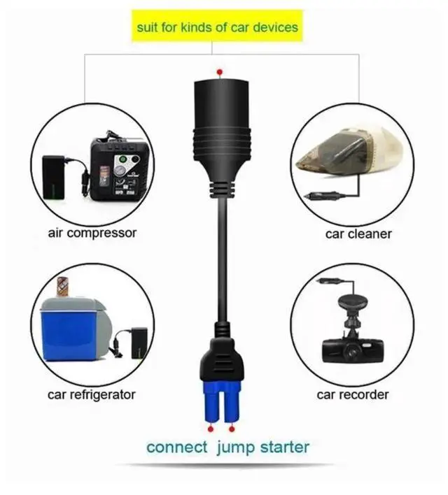 12V Car Emergency Start Power Adapter EC5 Female to Cigarette Lighter Socket Adapter Cable for Jump Starter Connector