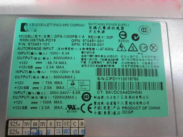 For DL580/585/980G7 1200W Platinum Power Supply 579229-001 570451-101